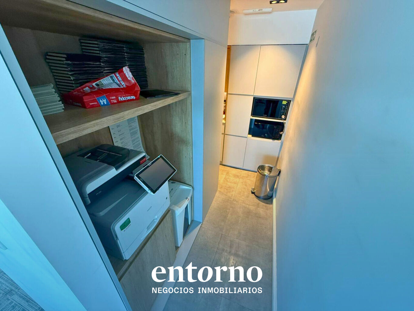 La oficina ocupa tres cuartos de planta, con una superficie total de 283 m² (incluyendo muros), y se encuentra en muy buen estado, con una distribución funcional y versátil, ideal para empresas medianas o grandes.